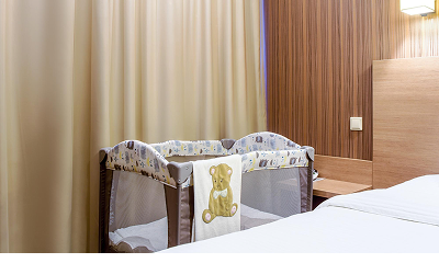 Wij bieden een kamer aan voor mensen met kleine kinderen van enkele maanden oud. Naast een tweepersoonsbed is er ook een babybedje aanwezig. Daarnaast beschikt de kamer over airconditioning, een televisie met ingestelde kinderkanalen, een magnetron, een aparte badkamer en gratis internet. Extra verbeterde geluidsisolatie.